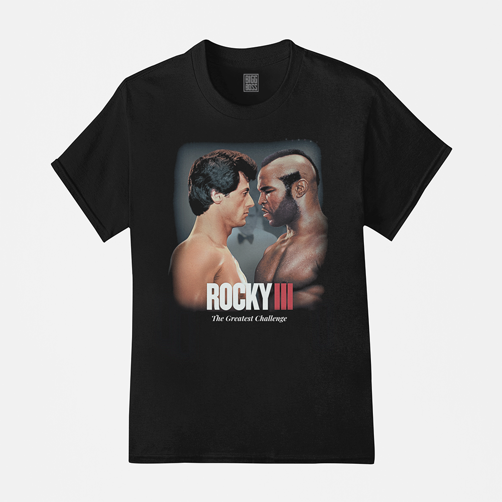 E agora você pode carregar esse momento épico estampado no peito com a Camiseta Clubber Pain – Rocky III (1982).