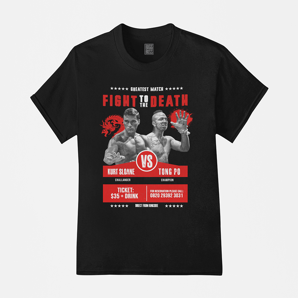 Inspirada no confronto mais brutal do cinema de artes marciais, essa camiseta traz o cartaz definitivo da luta que definiu uma geração. Kickboxer (1989) não foi só um filme. Foi um aviso: nunca encoste no irmão de um homem determinado.